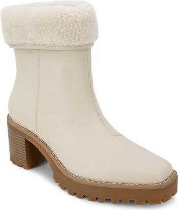 Plush faux-fur lining lends cozy warmth to this versatile bootie with a shaft that can be worn up or folded down.