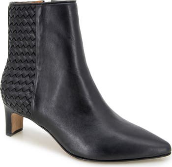 A pointy toe and demi block heel balance a rich leather bootie grounded by a cushioned footbed for lasting comfort.