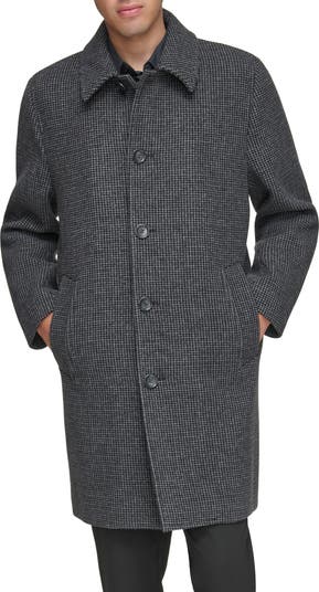 Exude polished style in this houndsooth coat constructed from a warm wool blend with a single-breasted closure, back vent and welt pockets.