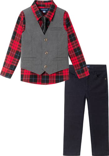 They'll look dapper as can be in this coordinated set that features a handsome vest and a clip-on tie for stylish fun.