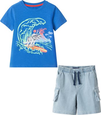 Made for sunny days and seaside escapes, this graphic T-shirt and shorts set is made from soft cotton fabric enhanced with stretch.
