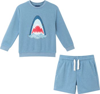Your little adventurer will love the bold shark graphic that fronts an easy-wear set crafted with a kiss of cotton.