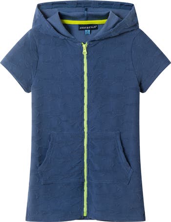 Terry sharks define a hooded cover-up top that keeps your kiddo dry and comfortable after a long day spent by the beach.