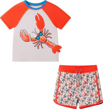 Watch them take off towards the waves in this matching set featuring a short-sleeve rashguard and coordinating trunks made with handy pockets.