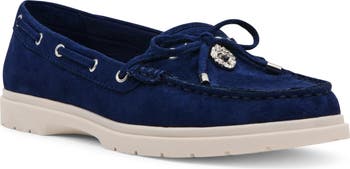 Goldtone hardware adds a flash of glamour to this updated boat shoe set on a cushy and flexible footbed.