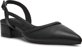 - Adjustable slingback strap with buckle closure