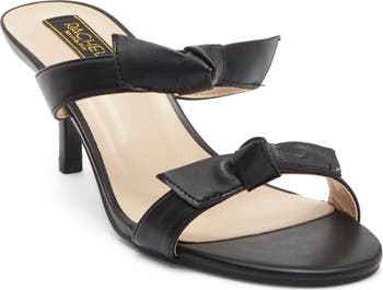 A pair of bows sweeten the classic look of a faux-leather mule balancing a rounded toe and slender heel.