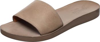 A minimal design gives a versatile appeal to this casual slide sandal crafted from rich, enduring leather and supported and a cushioned footbed for everyday adventures.