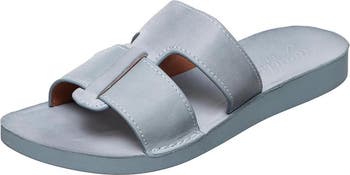 Woven straps enhance the sunny-day vibe of this soft leather slide sandal that's perfect for casual outfits.