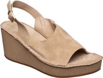 A wide vamp strap and a buckled slingback ensure a secure fit in this warm-weather-ready sandal lofted by platform wedge heel.