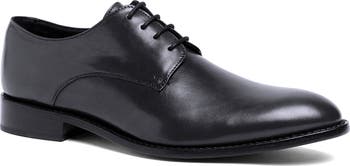 Elevate your wardrobe with a plain-toe derby constructed from calfskin leather with comfortable OrthoLite® cushioning and a low stacked heel.
