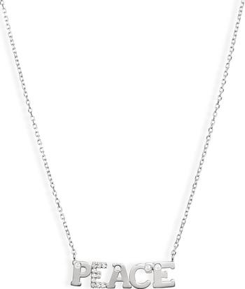 Show a sign of unity while wearing this brilliant sapphire necklace that spells "Peace."
