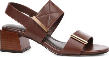 Polished hardware adds subtle shine to every stride you take in this elegant sandal crafted with smooth leather straps and a stacked block heel.