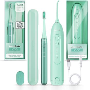 What it does: This sleek duo combines micro-vibrational brushing with targeted water flossing for an effective clean. Use the same brushing technique as a manual toothbrush while the Icon Rechargeable Power Toothbrush produces micro-vibrations to enhance the cleaning effect. The slim design features 2 brushing modes and a built-in smart timer that signals every 30 seconds and shuts off after 2 minutes. Its lithium-ion battery holds a charge for 30+ days of brushing. The Icon Rechargeable Power Toothbrush has earned the American Dental Academy's prestigious seal of approval. The powerful Icon Rechargeable Water Flosser has an ultra-fine water jet that expertly cleans between teeth and along the gumline for a fresher, healthier smile. With 3 flossing modes and a long-lasting rechargeable lithium-ion battery, your flossing routine will always be customizable, effective and convenient.