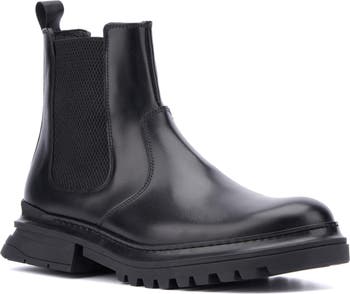 Streamlined design yields dapper versatility in this weather-ready Chelsea boot crafted from sleek leather with rugged rubber lugs.
