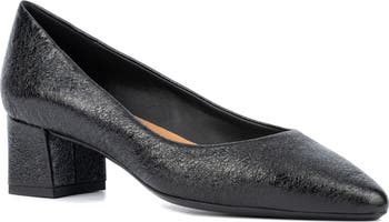 A pointy toe and wrapped block heel balance a textured leather pump that will elevate your desk-to-dinner ensemble.