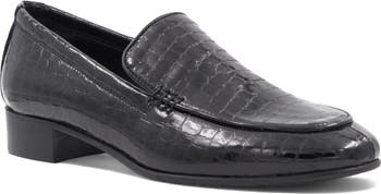 A water-repellent finish enhances the durability of this smooth leather loafer topped with a clean-lined apron toe.