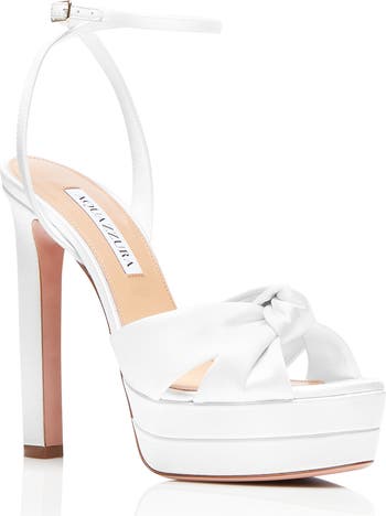 Channel '40s glamour in this satin sandal designed with a knotted vamp, wraparound ankle strap and a bold platform and slim heel.