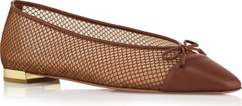 The label's timeless elegance meets everyday comfort in this wear-with-anything ballet flat made from breathable, sheer mesh with a leather cap toe and metallic sliver heel.