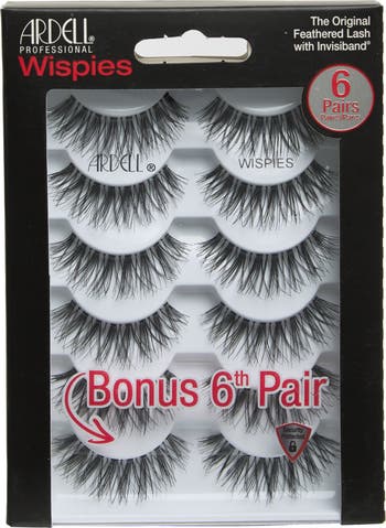 Let Ardell's most popular Wispies strip lashes speak volumes! You'll get feathery, full plush lashes that still look natural due to the crisscrossed knotting. With long hair fiber lengths and flared lash style, you can achieve fearlessly bold party looks in a snap. They are knotted and feathered by hand for perfect uniformity and have an eye-opening effect.