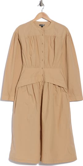 Long Sleeve Button Front Cotton Dress