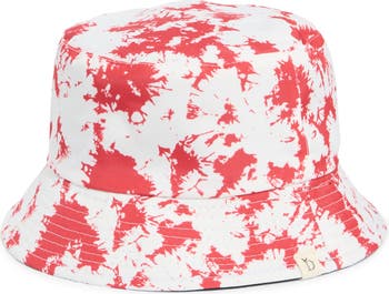 Top off your look with a pop of color with this trend-right bucket hat patterned in a laid-back tie-dye print that reversible to a cool solid hue.