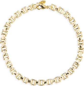 A timeless piece for layering or wearing solo, this box-chain bracelet is dipped in a radiant 18k-gold finish.