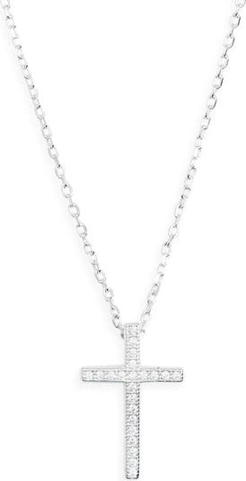 Finish your look with a dainty chain necklace accented with a cross pendant and finessed in cubic zirconia for lasting luster.