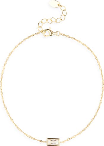 Bring some sparkle to your wrist stack with this dainty Singapore-chain bracelet boasting a bezel-set cubic zirconia stone.