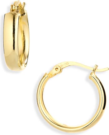 Sleek and simple, these gleaming hoop earrings boast a flat silhouette for everyday elegance.