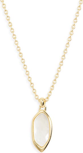 A mother-of-pearl inlay brings a milky glow to the pendant of this dainty necklace crafted in 18-karat gold plated sterling silver.
