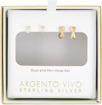 Bright-white crystals amplify the shimmer and shine of an earrings set of studs and hoops that can be worn together or solo for minimalist flair.