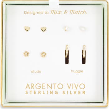 Pretty crystals and faux pearls amplify the chic style of a jewelry set complete with studs and hoops that can be stacked together or worn solo for minimalist charm.