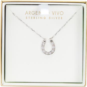 Pavé-set crystals enhance the shimmer and shine of a horseshoe-pendant necklace crafted from sterling silver to illuminate your looks.