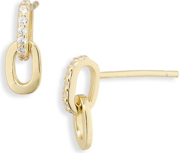 Dainty cubic zirconia bring just-right sparkle to these interlocking oval-link drop earrings plated in warm 18-karat gold.