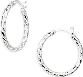 A twisted rope design brings modern appeal to these slim hoop earrings crafted from polished sterling silver.