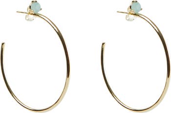 A semiprecious stone brings a pop of color to sleek, high-shine hoop earrings crafted in polished sterling silver or sterling silver with 18-karat gold plate.