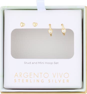 Bring romantic shine to your look with this set of polished heart stud and sparkly cubic-zirconia heart huggie hoop earrings.