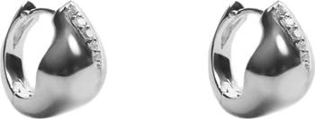 Geometric facets and a stream of cubic zirconia create unique light play on these chunky sterling silver hoop earrings.
