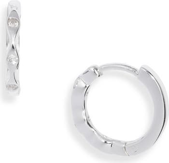 Sparkling stones illuminate the curvy design of these glamorous huggie earrings made from polished sterling silver.