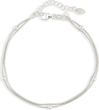 Slinky links shine elegantly along a flexible double-chain bracelet crafted from polished sterling silver.