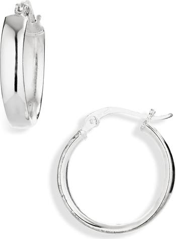 Sleek and simple, these gleaming hoop earrings boast a flat silhouette for everyday elegance.