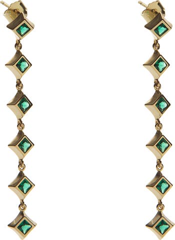 Vibrant cubic zirconia lights up geometric settings in these sterling silver drop earrings that bring glinting movement to night-out looks.