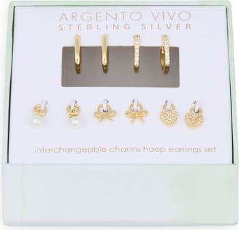 Add instant glamour to your ear stack with this double pack of huggie hoop earrings that comes complete with three pairs of interchangeable charms that allow you to change up your style on whim.