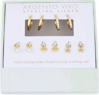 Add instant glamour to your ear stack with this double pack of huggie hoop earrings that comes complete with three pairs of interchangeable charms that allow you to change up your style on whim.