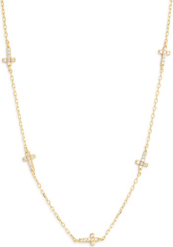 Gleaming goldtone plate adds a polished finish to this delicate-chain necklace accented with pavé CZ cross stations for added sparkle.