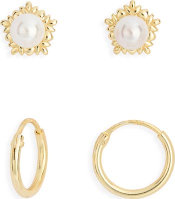 Set of 2 Faux Pearl Stud & Hoop Earrings