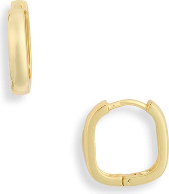 Elevate your everyday with these sterling silver huggie-hoop earrings featuring 18-karat-gold plating and a modern square shape.