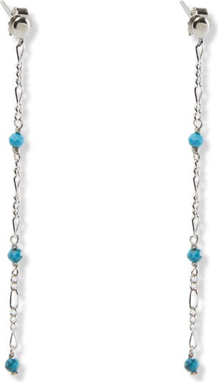 Colorful beads of amazonite or turquoise cascade these swingy sterling silver Figaro chain earrings.