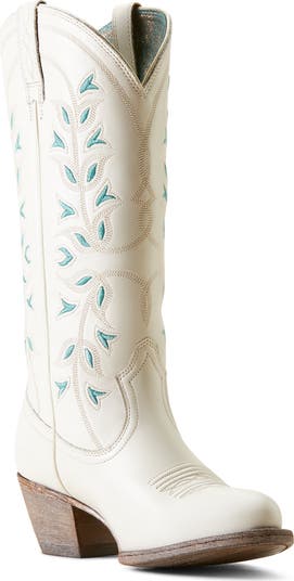 Flame-inspired stitching adds to the authenticity of a signature cowgirl boot cut from premium full-grain leather and set on a block heel to slightly loft your look. A cushioned insole and lightweight, flexible construction enhance the easy-wearing appeal.